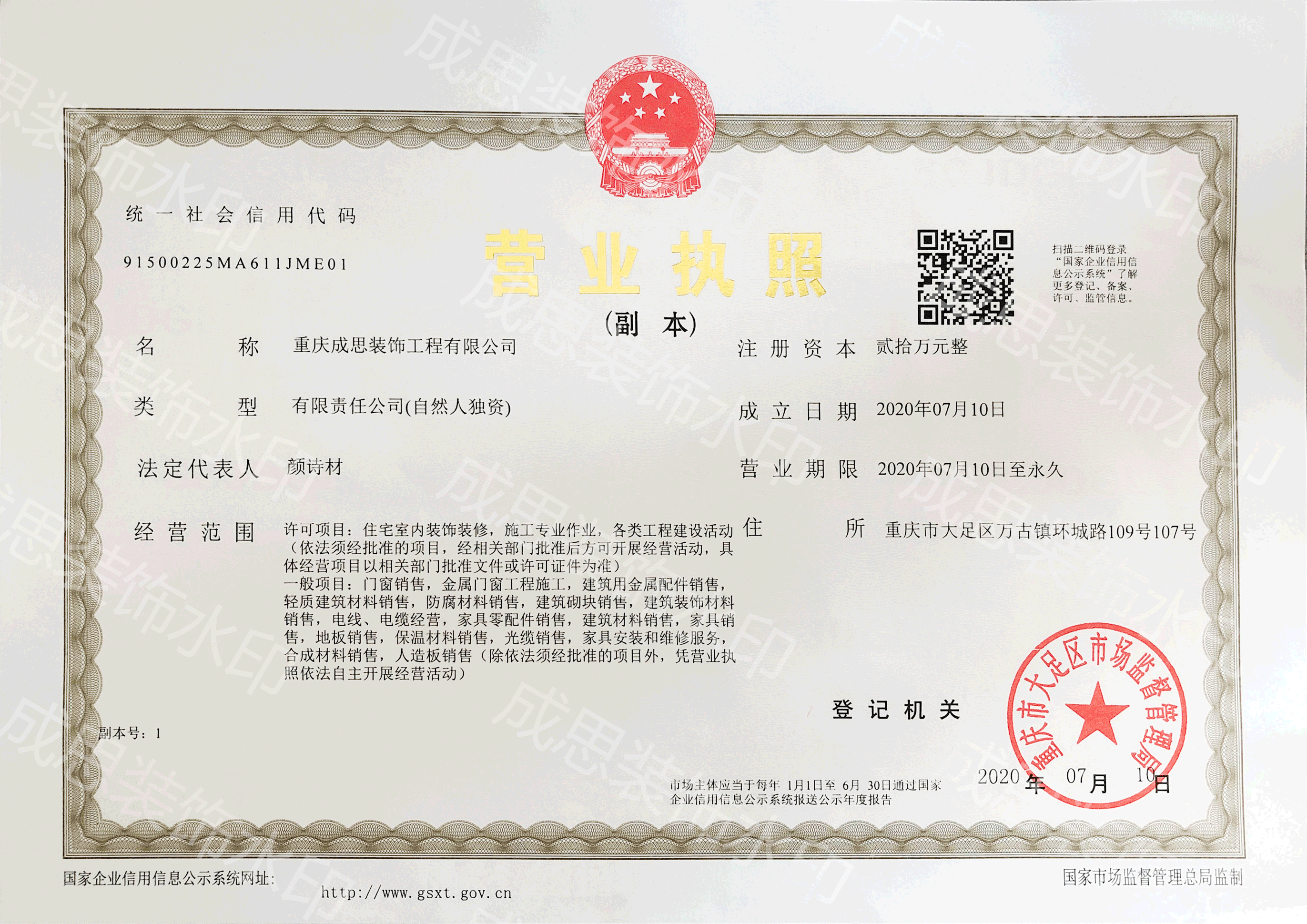 重慶成思裝飾工程有限公司營(yíng)業(yè)執(zhí)照...